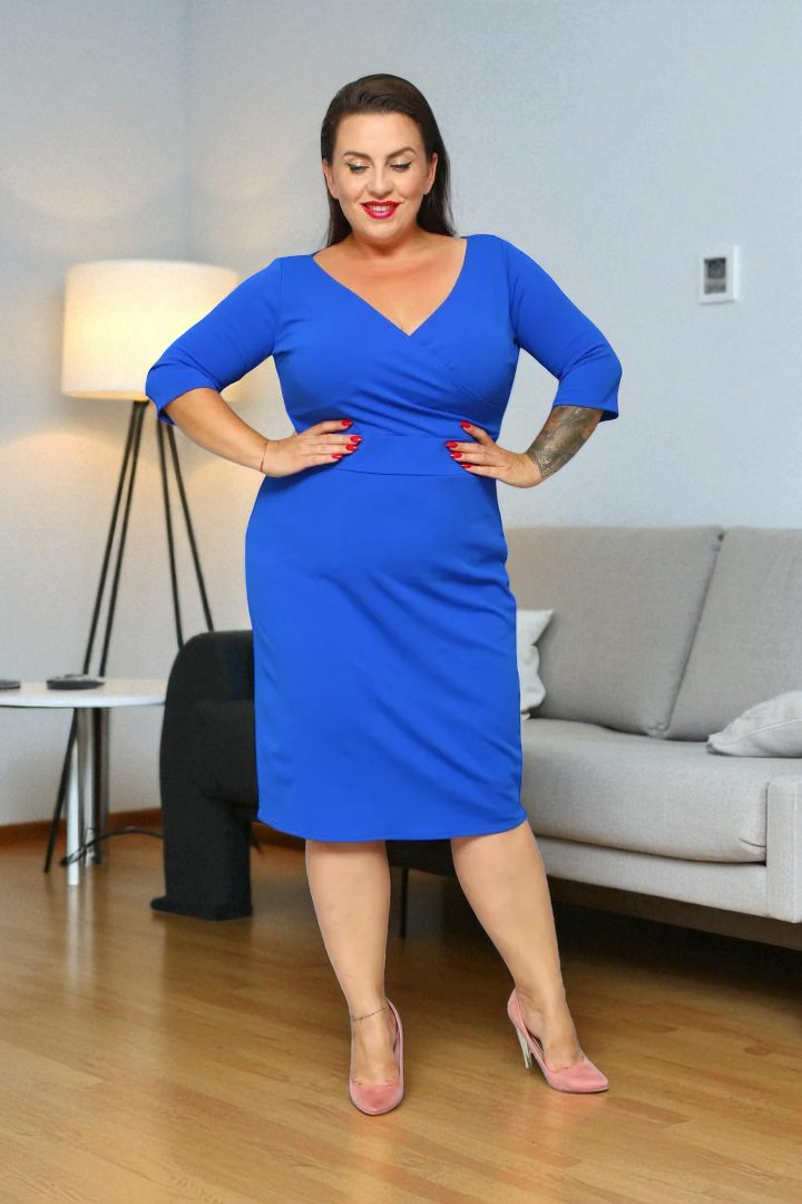 Sukienka Olivia kopertowy dekolt chabrowa gładka