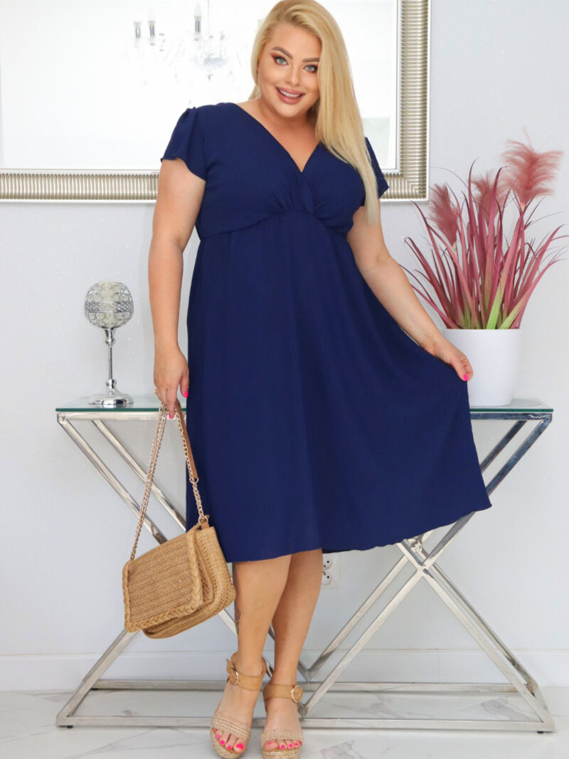 Sukienka PEGGY trapezowa 100% wiskoza GRANATOWA NATURALNY SKŁAD