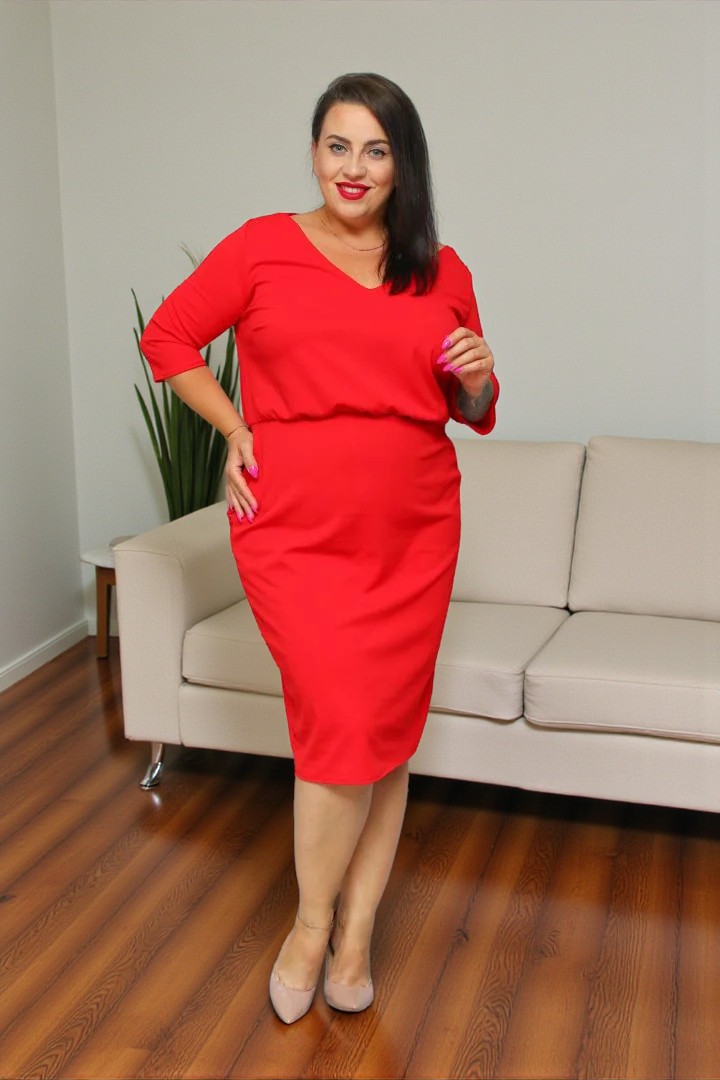 Sukienka Jolanda dzianinowa z marszczoną gumą czerwona