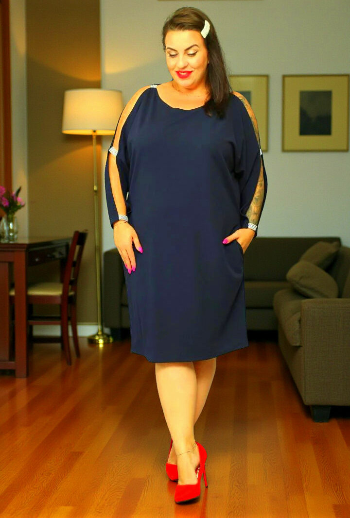 Sukienka Chiara oversize cekiny cyrkonie granat gładka