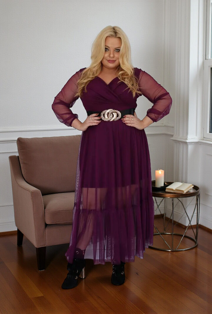 Sukienka Sorena lekka zwiewna rozkloszowana fioletowy tiul