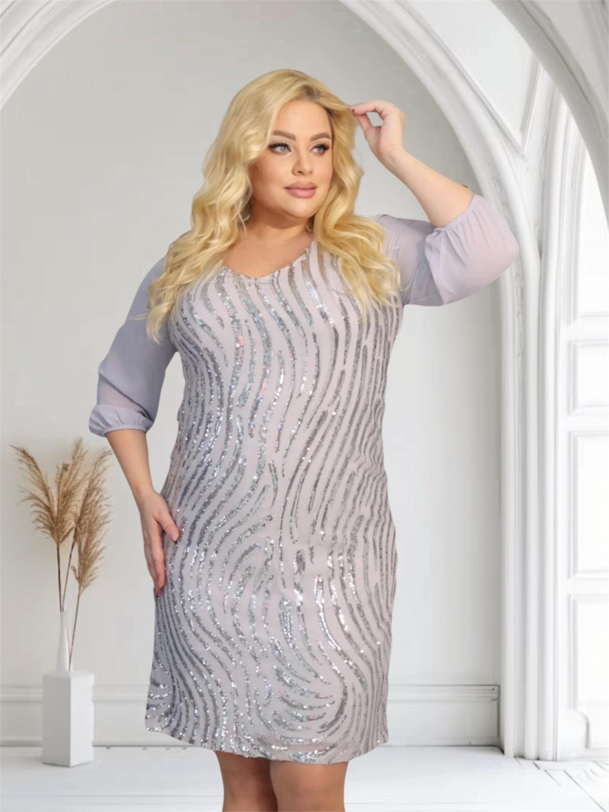 Sukienka Kesja cekinowa szyfonowa kokarda srebrna