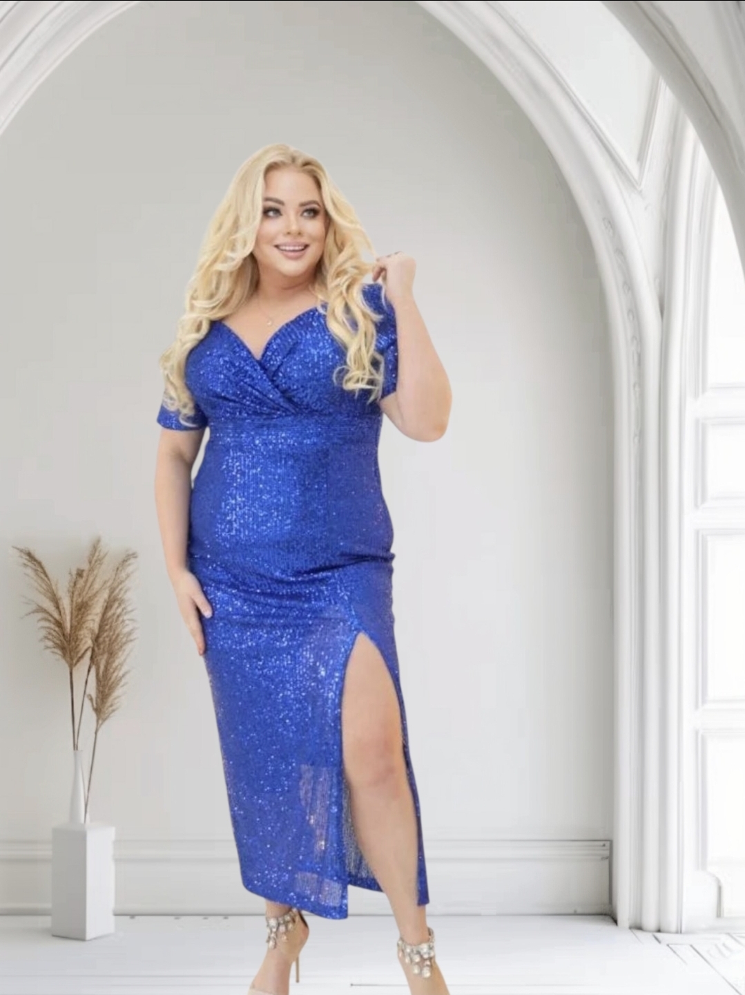 Sukienka Golden maxi ołówkowa cekinowa kopertowy dekolt CEKINY chabrowa339,00 zł