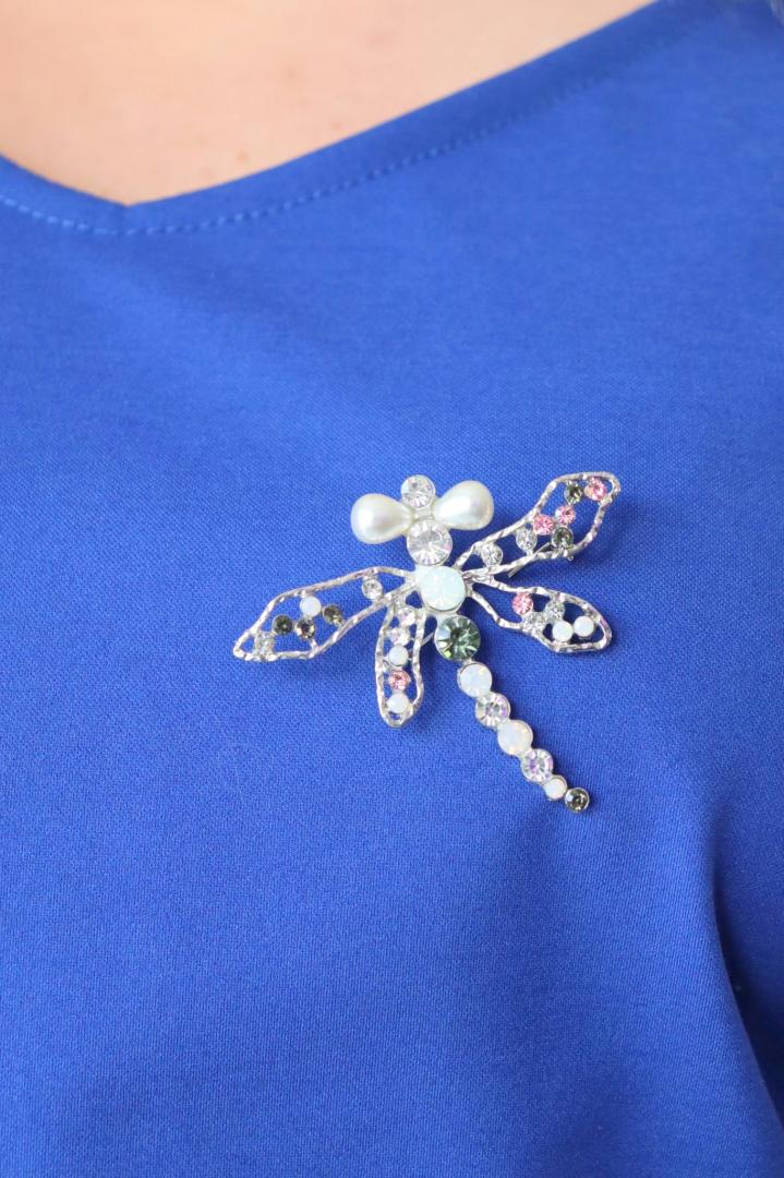 Sukienka Marisa pudełkowa z ozdobną broszką naturalna chabrowa PROMOCJA