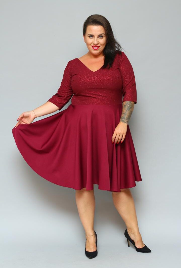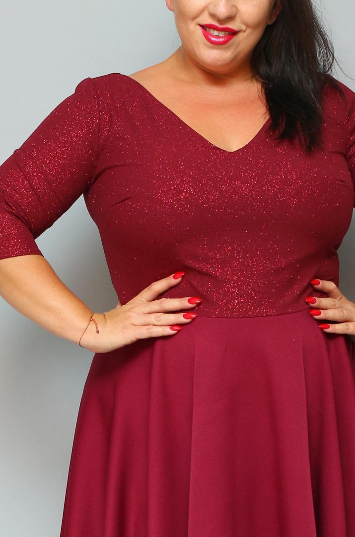 Sukienka Carla rozkloszowana dekolt serek bordo SPARKLE WYPRZEDAŻ