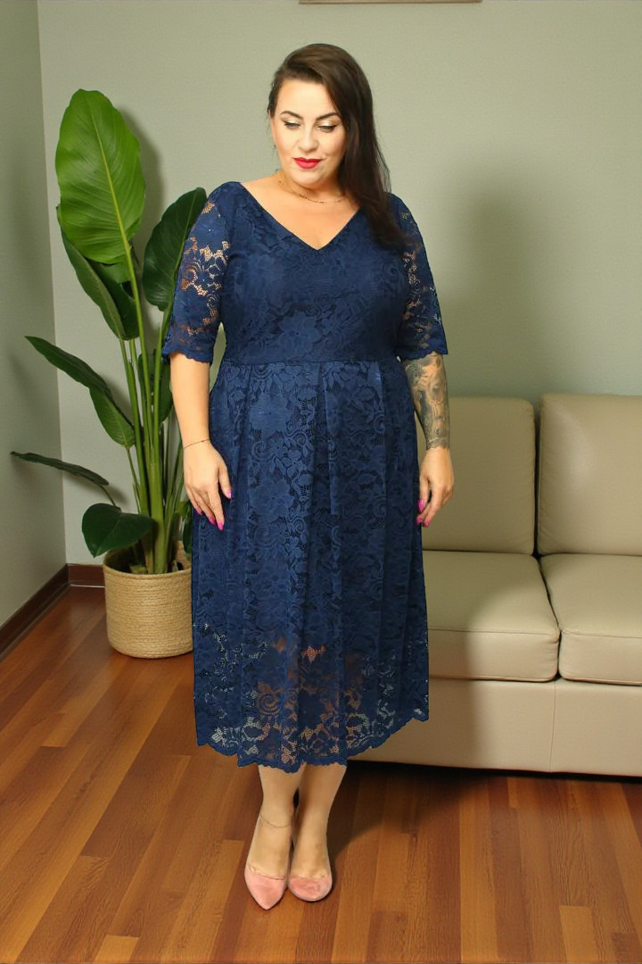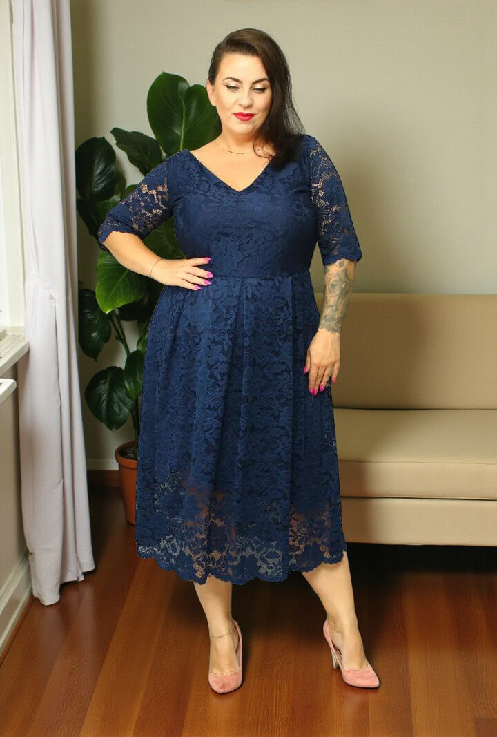 Sukienka Forsetia koperkowy dekolt koronkowa ołówkowa KOKARDKA granatowa