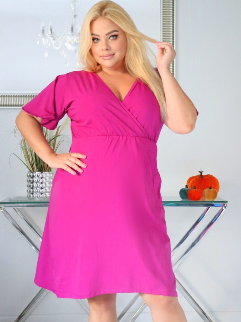 Sukienka NARINA trapezowa 100% bawełna FUKSJA NATURALNY SKŁAD