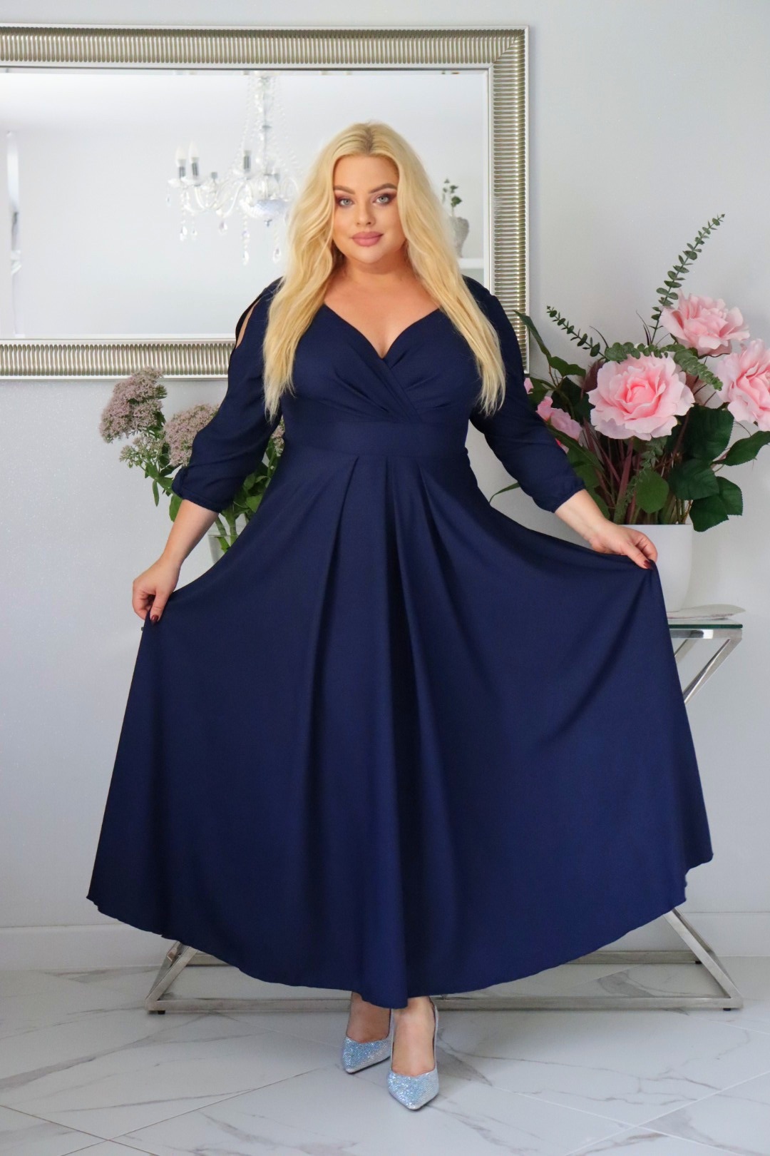 Sukienka Noelia trapezowa rozcięte rękawy cekiny granatowa