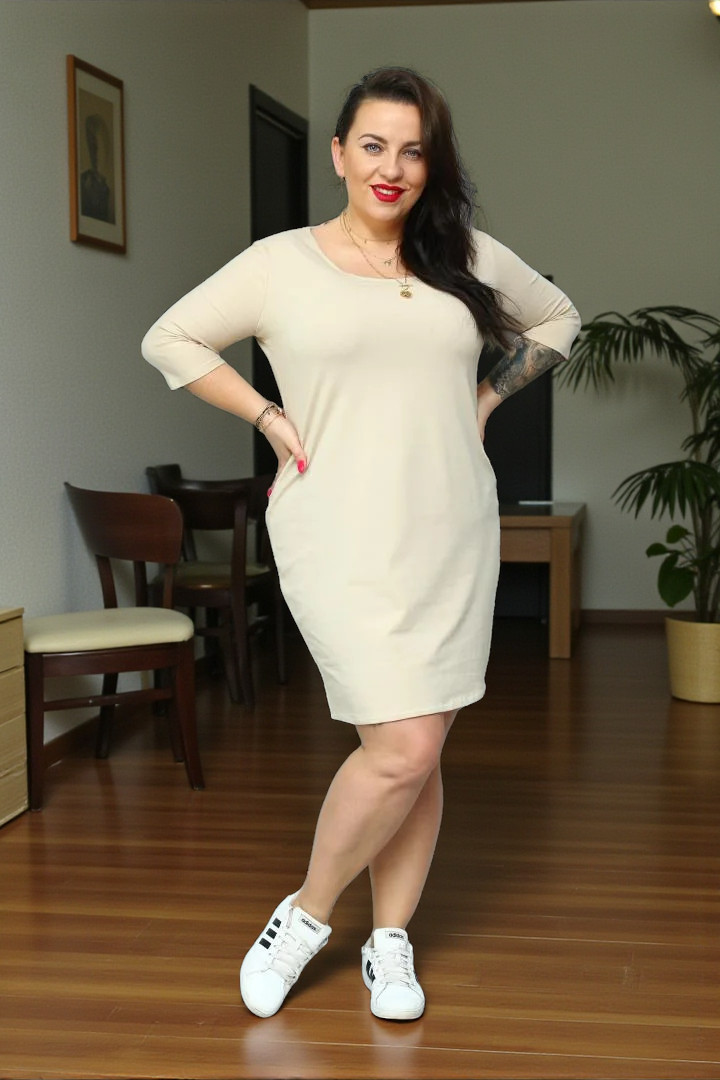 Sukienka Ada bombka oversize 100% BAWEŁNA POLSKI DRES nude beż