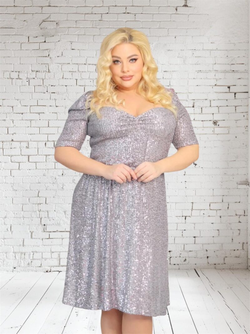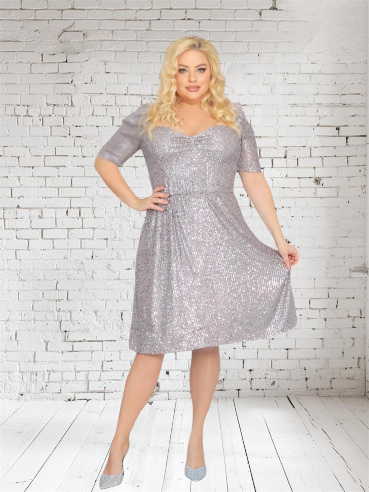 Sukienka Avery cekinowa romantyczny dekolt srebrna