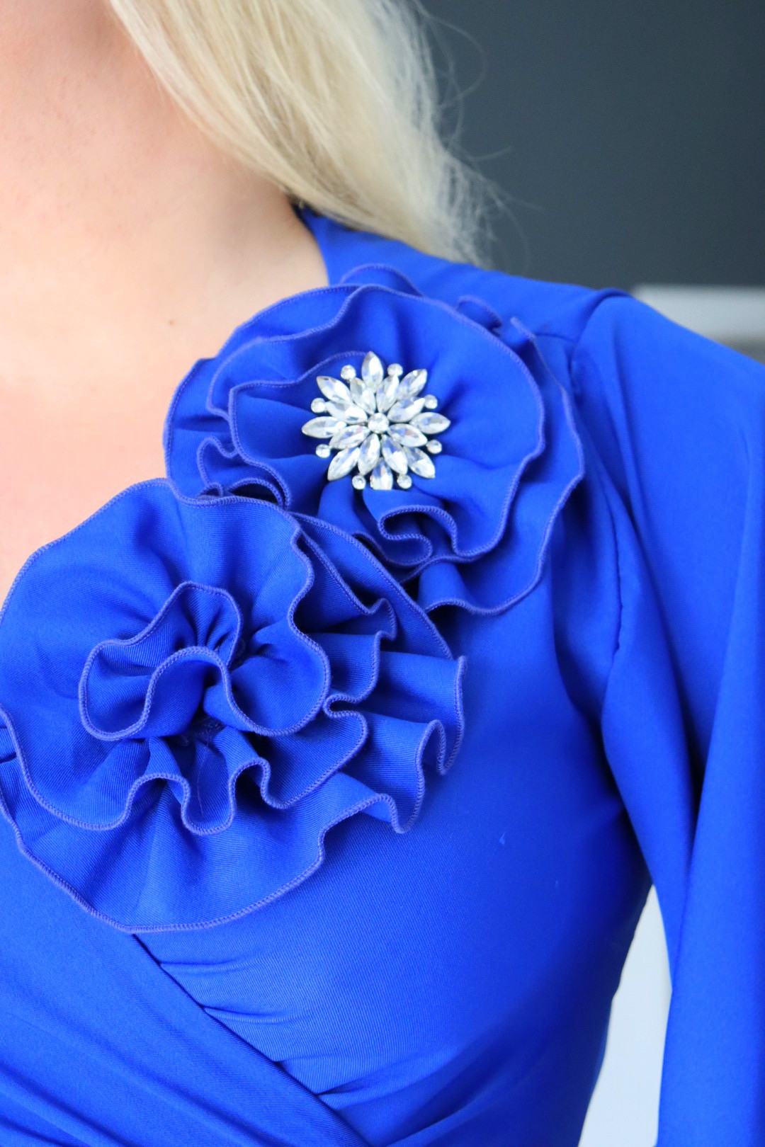 Ręcznie szyte róże i komfort: sukienka. W zestawie z broszką! Chabrowa!