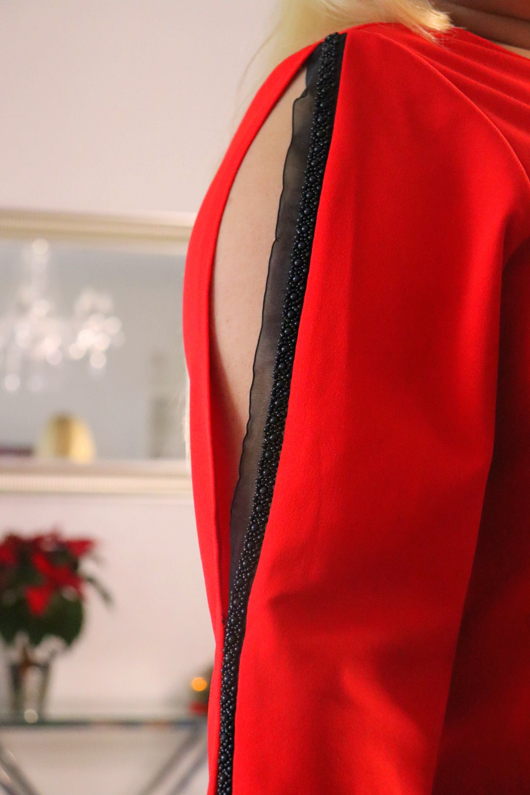 Sukienka Domenica trapezowa rozcięte rękawy ozdobna taśma czerwona WYPRZEDAŻ