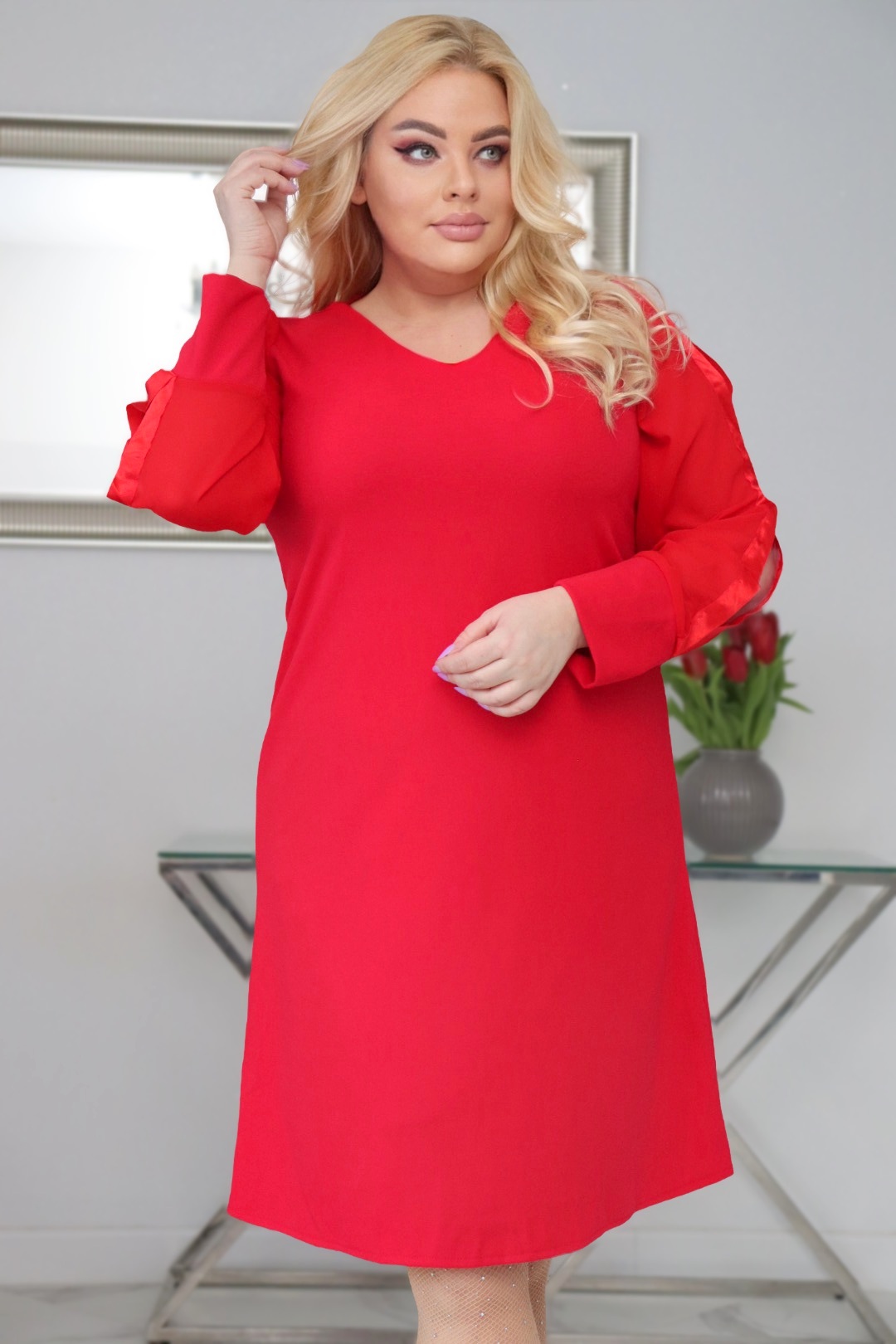 Sukienka Sygita trapezowa szyfonowe rozcięte rękawy wstążka czerwona