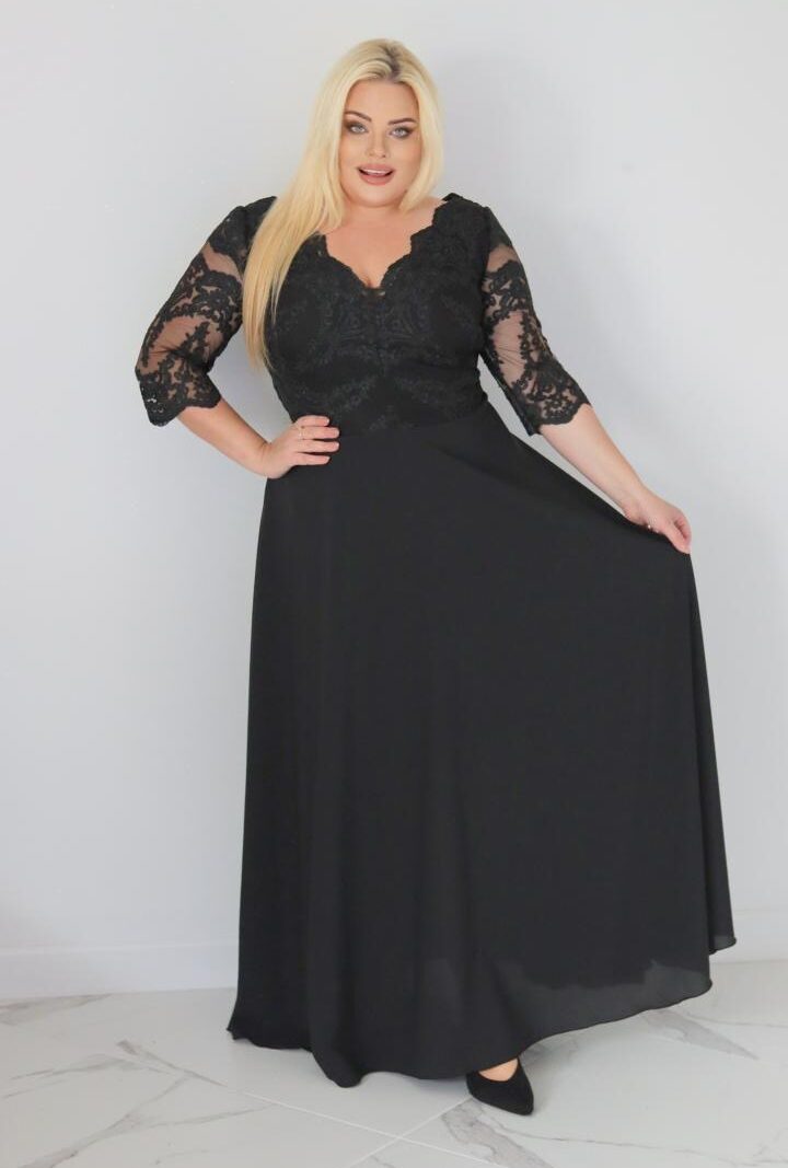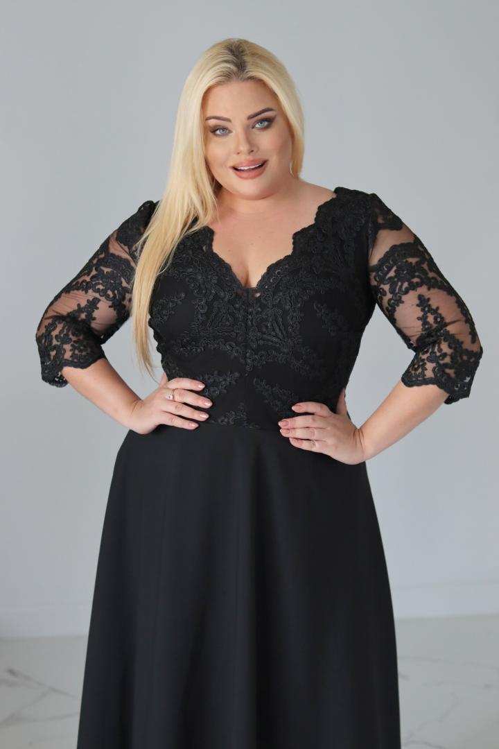 Sukienka Sefora rozkloszowana long wieczorowa kopertowy dekolt czarna PROMOCJA