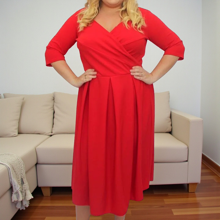 Sukienka Colette rozkloszowana kopertowy dekolt – Zanim kupisz, zobacz film, który pokazuje jak pięknie się układa. BORDOWA
