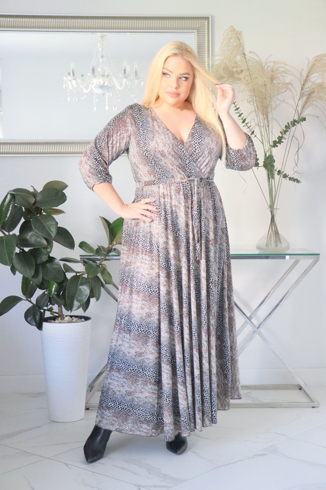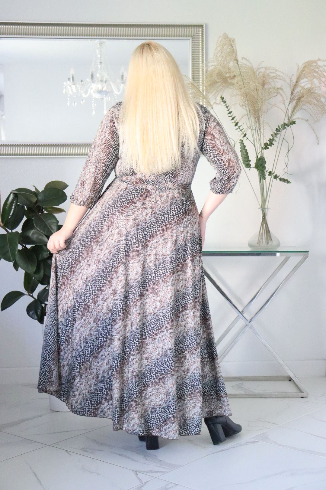 Luksusowa sukienka MAXI w panterkę z subtelnym blaskiem kryształów 💎 Kopertowy dekolt Glamour!!!🌟