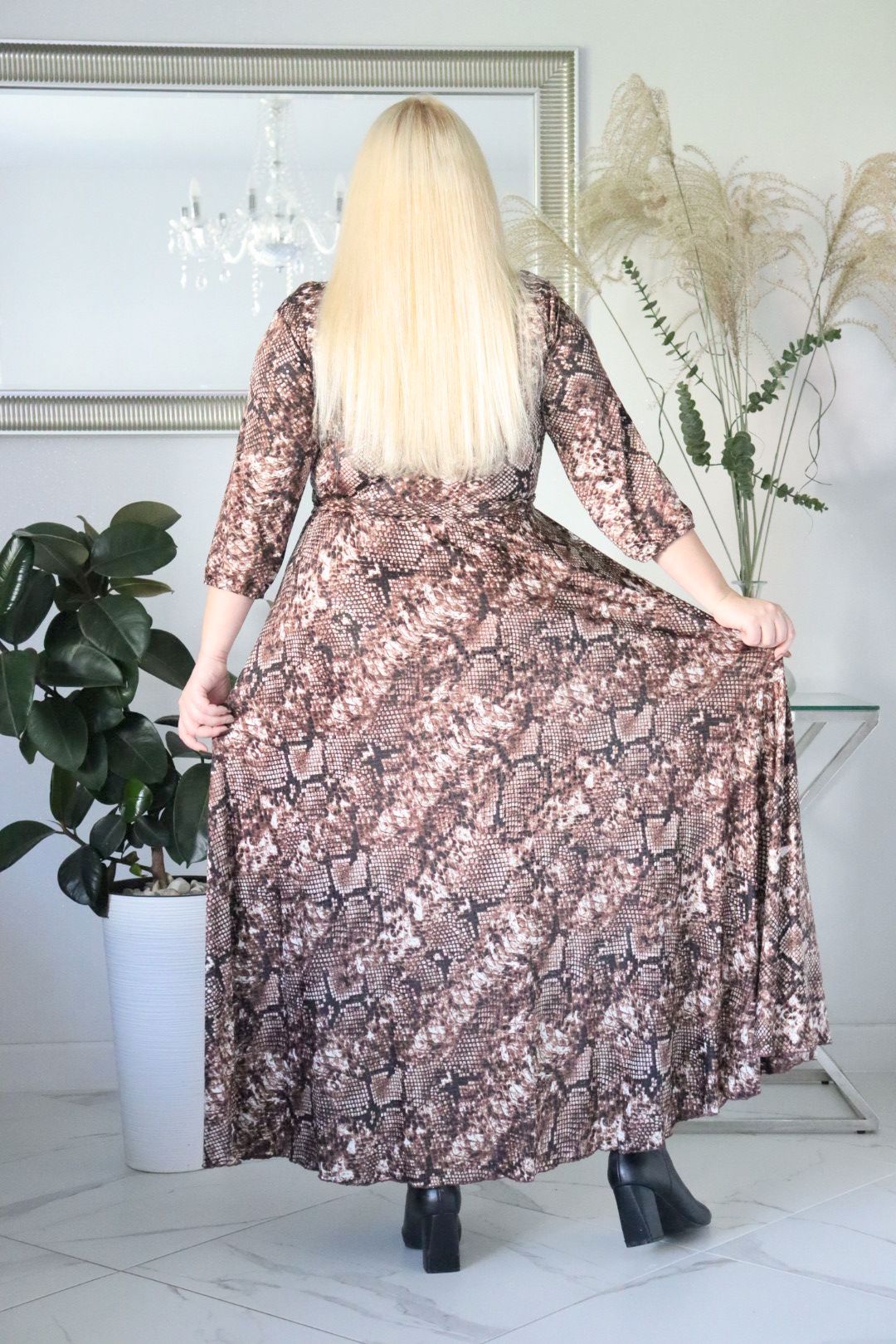 🇵🇱 Polski ProduktDrapieżna sukienka maxi panterka z kryształkami 💎 komfortowa dzianina, kopertowy dekolt. P004.