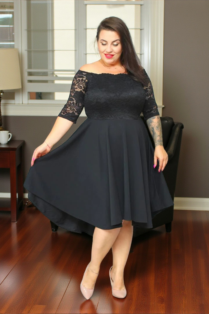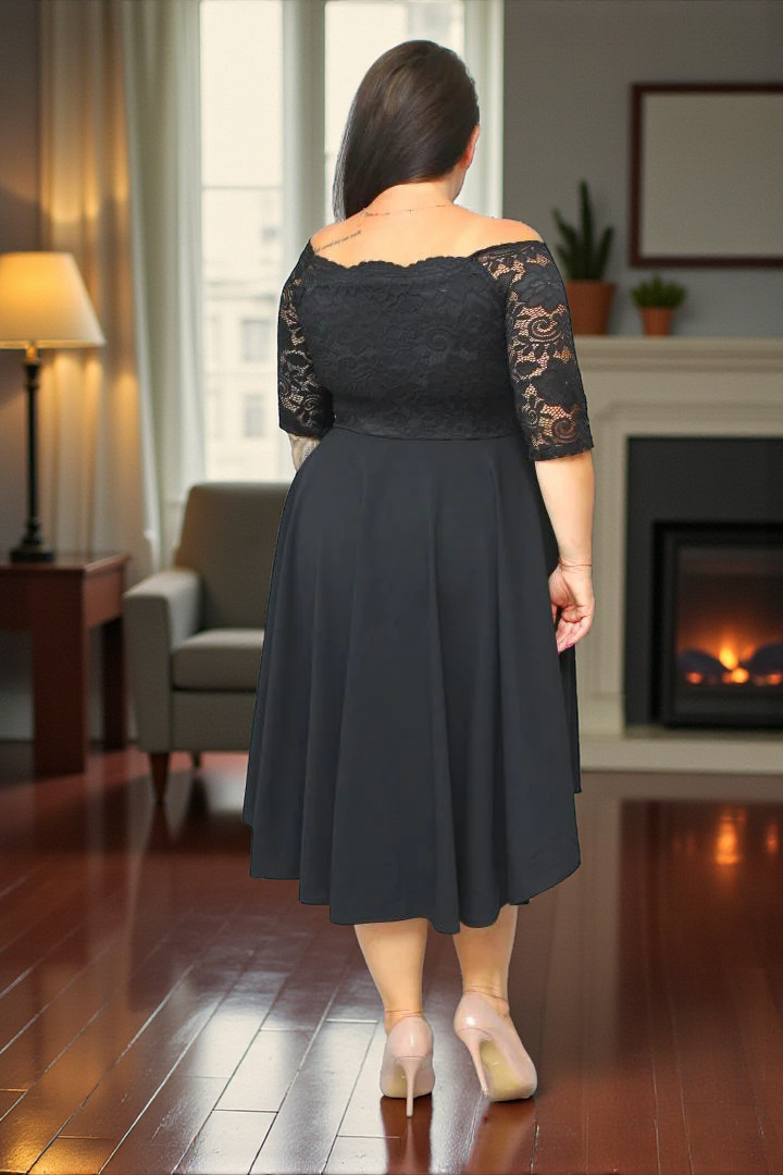 🇵🇱 Polski ProduktSukienka Carmen rozkloszowana koronkowa czarna gładka