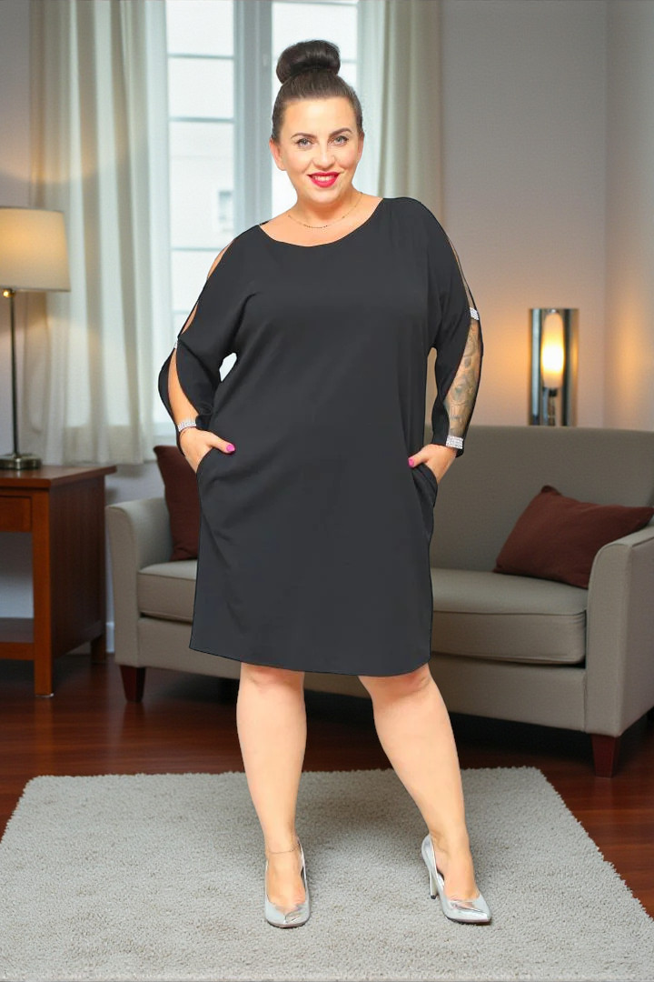 🇵🇱 Polski ProduktSukienka Chiara oversize cekiny cyrkonie czarna gładka