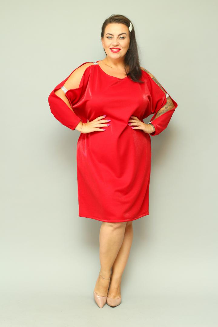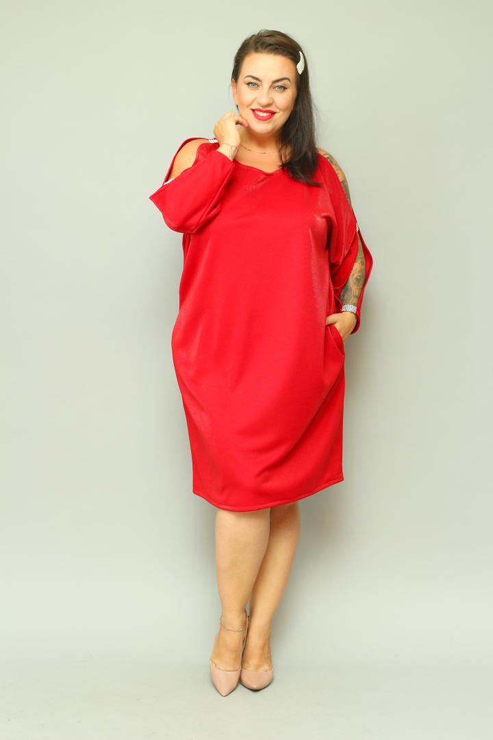 Sukienka jest wykonana z wysokiej jakości dzianiny, która charakteryzuje się rozciągliwością około 4 cm. Materiał nie mechaci się i nie kulkuje bo stawiamy zawsze i tylko na jakość.