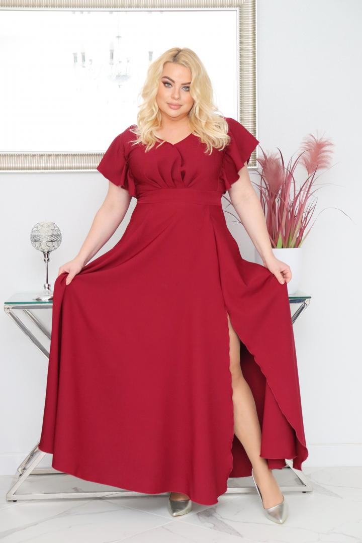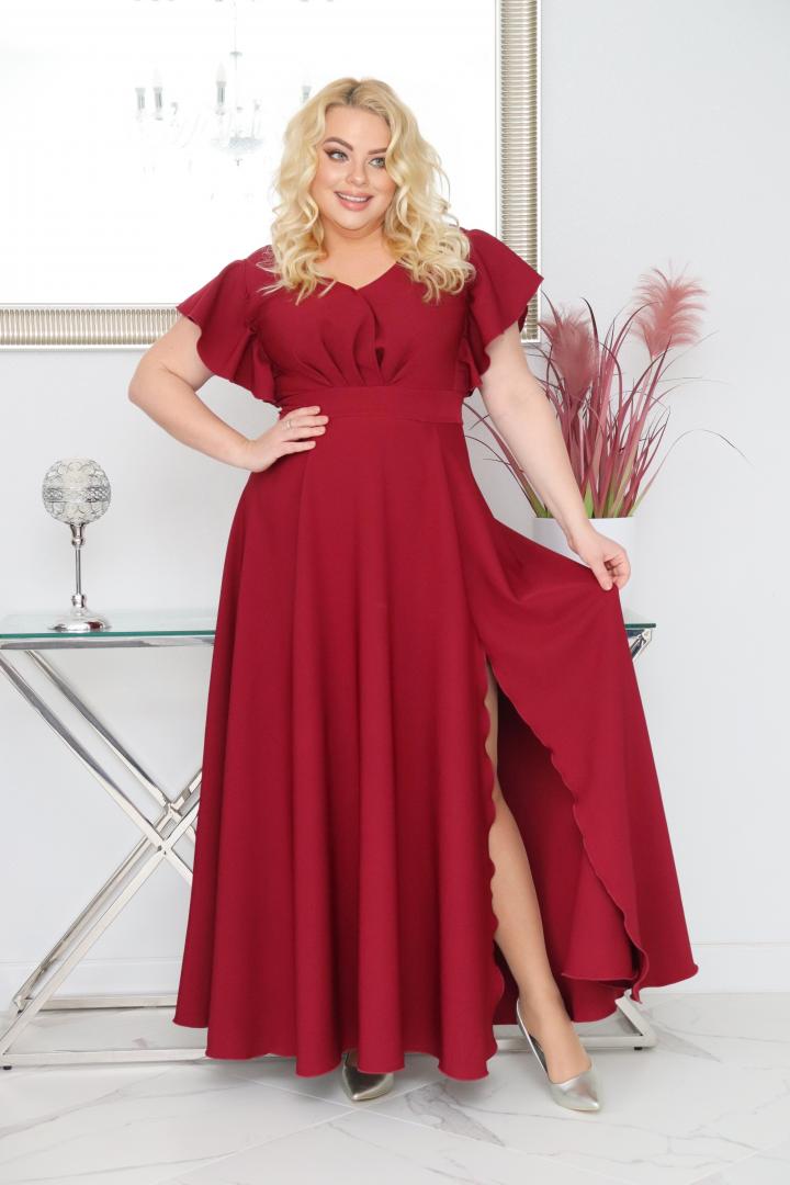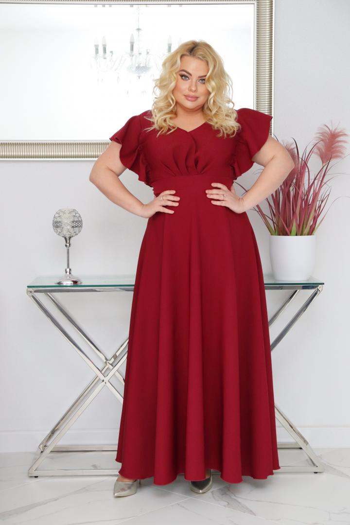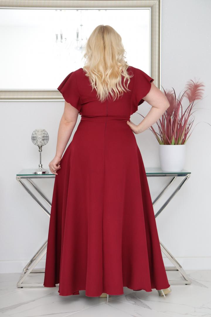 Sukienka Colette rozkloszowana kopertowy dekolt – Zanim kupisz, zobacz film, który pokazuje jak pięknie się układa. BORDOWA