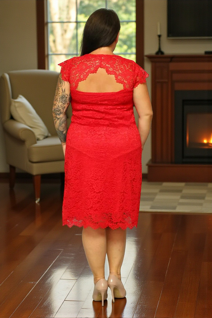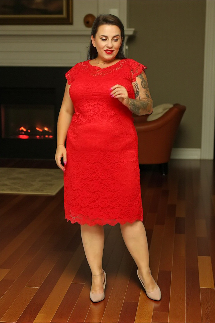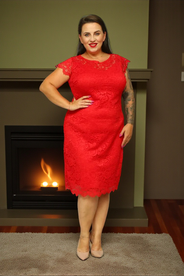 🇵🇱 Polski ProduktSukienka Daria trapezowa koronkowa czerwona gipiura