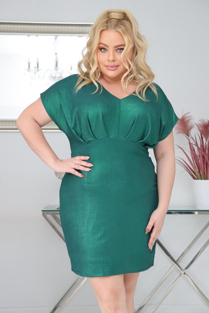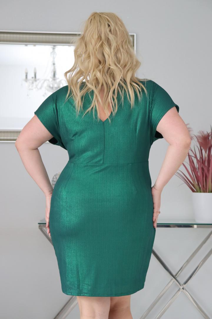 🇵🇱 Polski ProduktSukienka Diora romantyczny dekolt z zakładkami mieniąca butelkowa zieleń