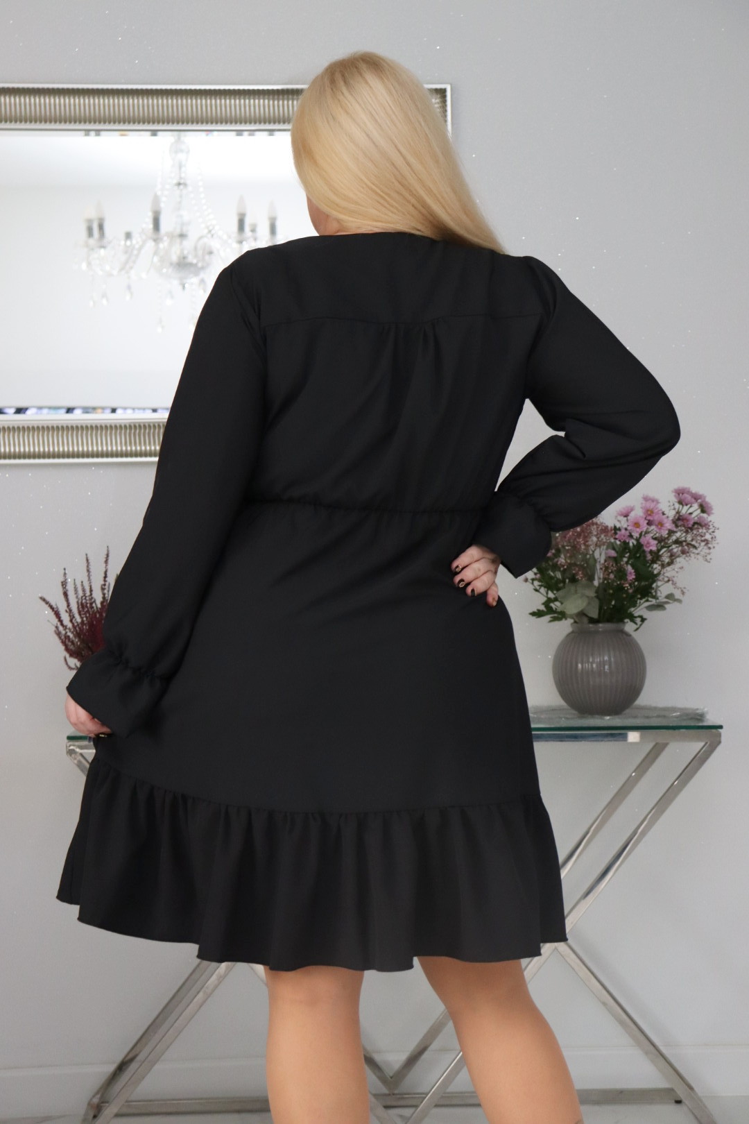 🇵🇱 Polski ProduktSukienka Lundia rozkloszowana zwiewna tkanina silk kopertowy dekolt czarna
