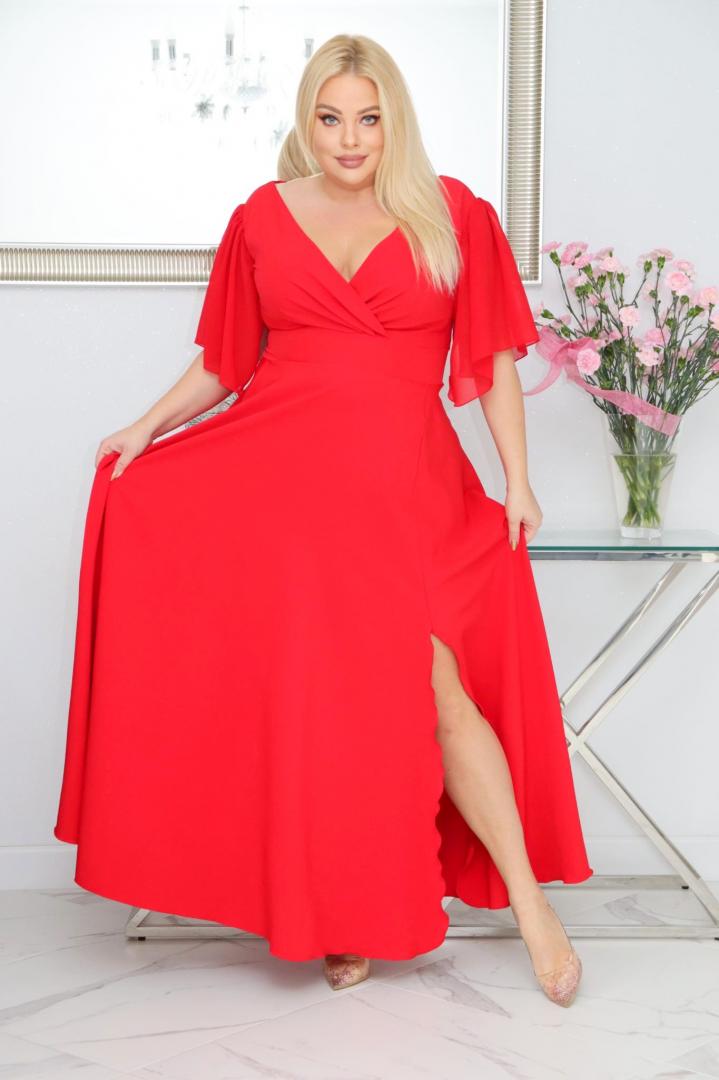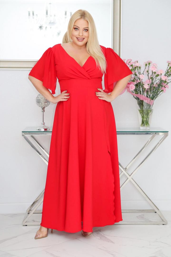 Malwa – odkryj sukienkę z lekkością szyfonowych rękawów. CZERWONA
