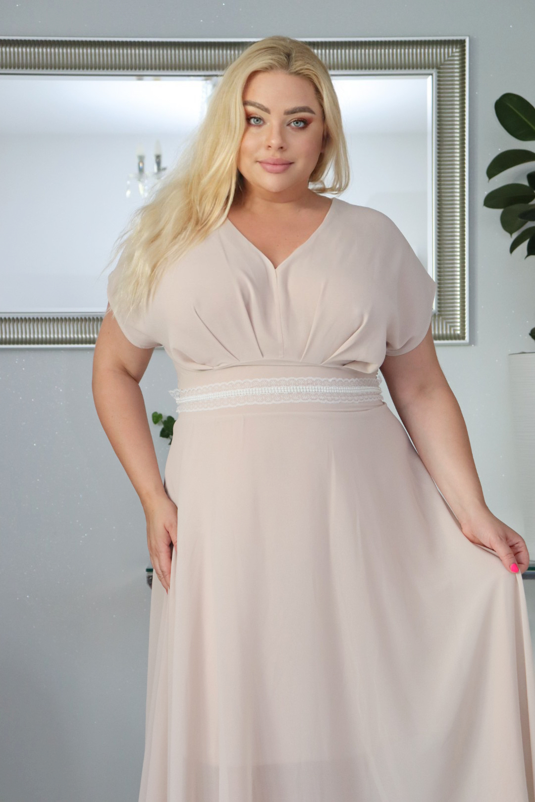 - Wymiar ten jest krytyczny, ponieważ decyduje o tym, czy góra sukienki ułoży się idealnie. Upewnij się, że miara jest wzięta na wdechu, ale nie jest zbyt ciasna! 💨