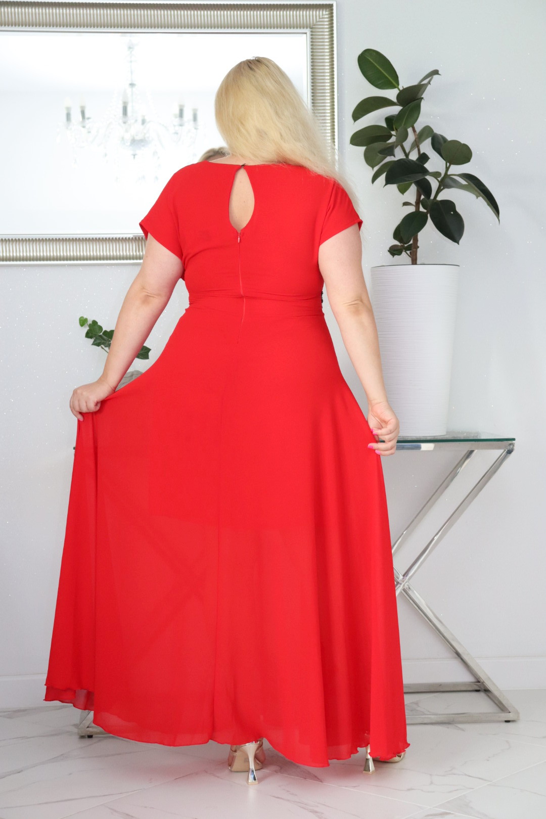 🇵🇱 Polski ProduktSukienka MELISA rozkloszowana long wieczorowa dekolt zakładki CZERWONA