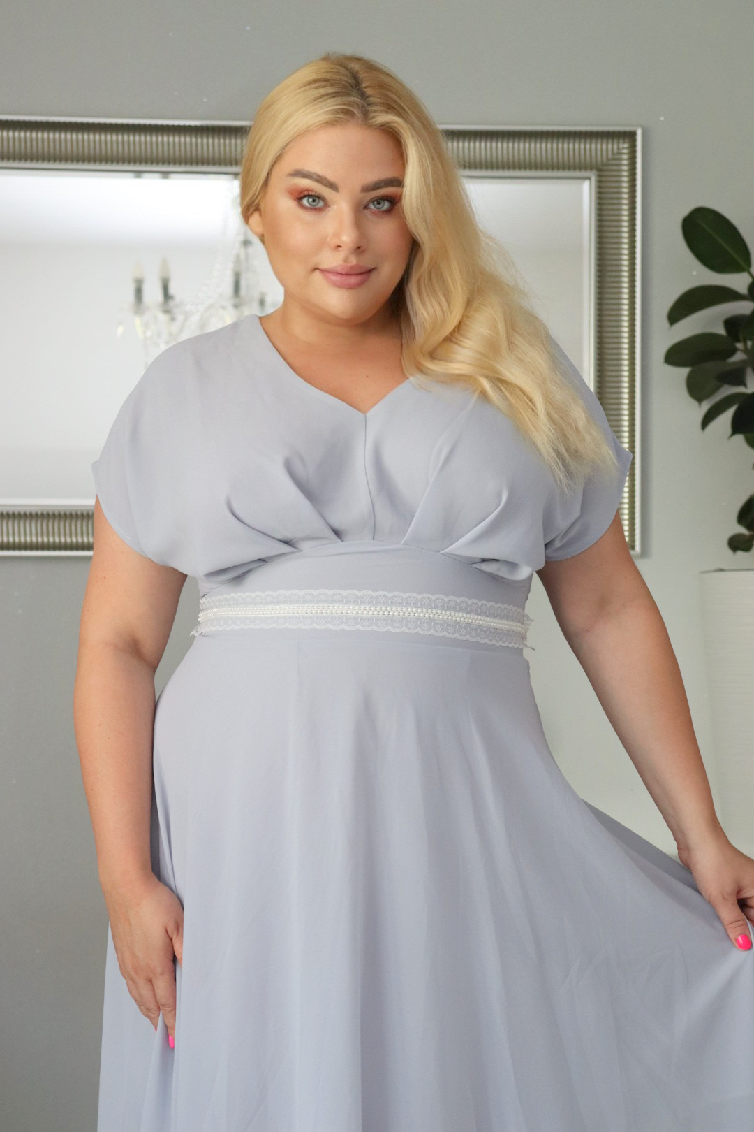- Sukienka została zaprojektowana, by pięknie tuszować wystający brzuszek, dzięki luźnemu krojowi poniżej odcięcia pod biustem.