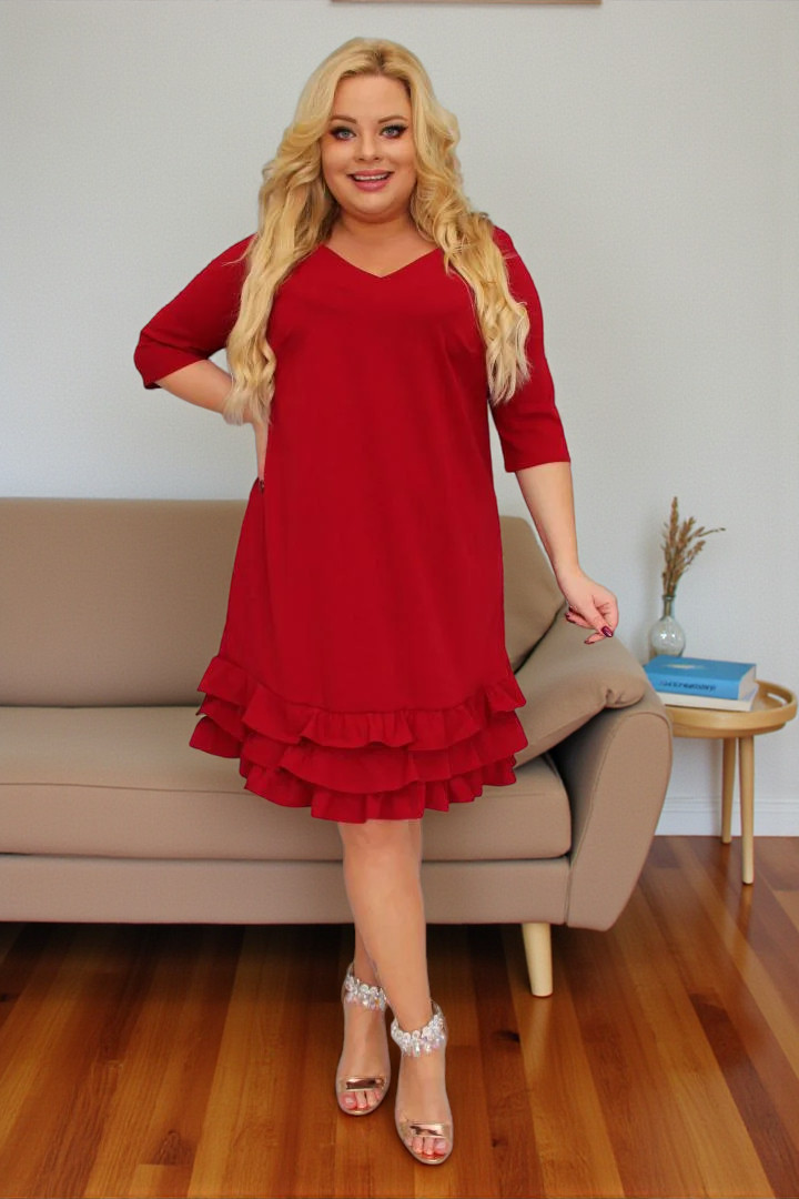 - Trzy subtelne falbanki na dole sukienki dodają jej niepowtarzalnego, dziewczęcego uroku.