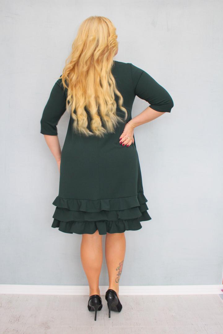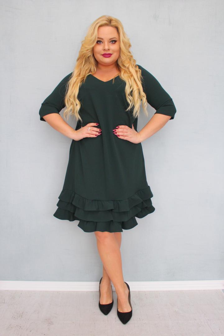 Sukienka Milagros – klasyczny fason trapezowy z romantycznymi falbankami! BUTELKOWA ZIELEŃ