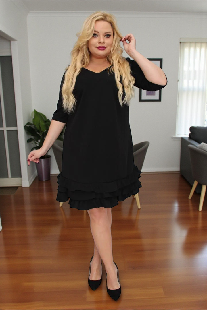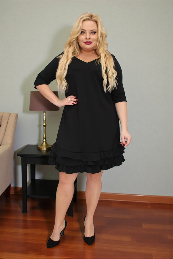 ⭐⭐⭐⭐⭐ 4.8Bestseller450+ sprzedanych!🇵🇱 Polski ProduktSukienka Milagros – klasyczny fason trapezowy z romantycznymi falbankami! CZARNA