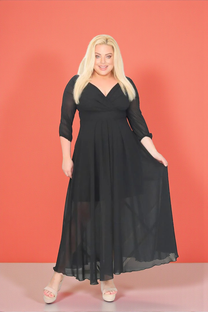 🇵🇱 Polski ProduktSukienka rozkloszowana zwiewna z szyfonu kopertowy dekolt czarna A016