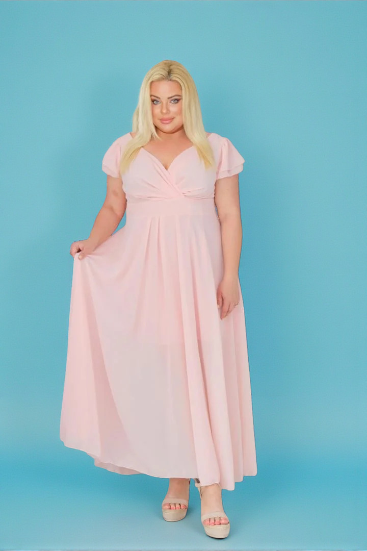 🇵🇱 Polski ProduktSukienka rozkloszowana zwiewna z szyfonu kopertowy dekolt pudrowy róż A016