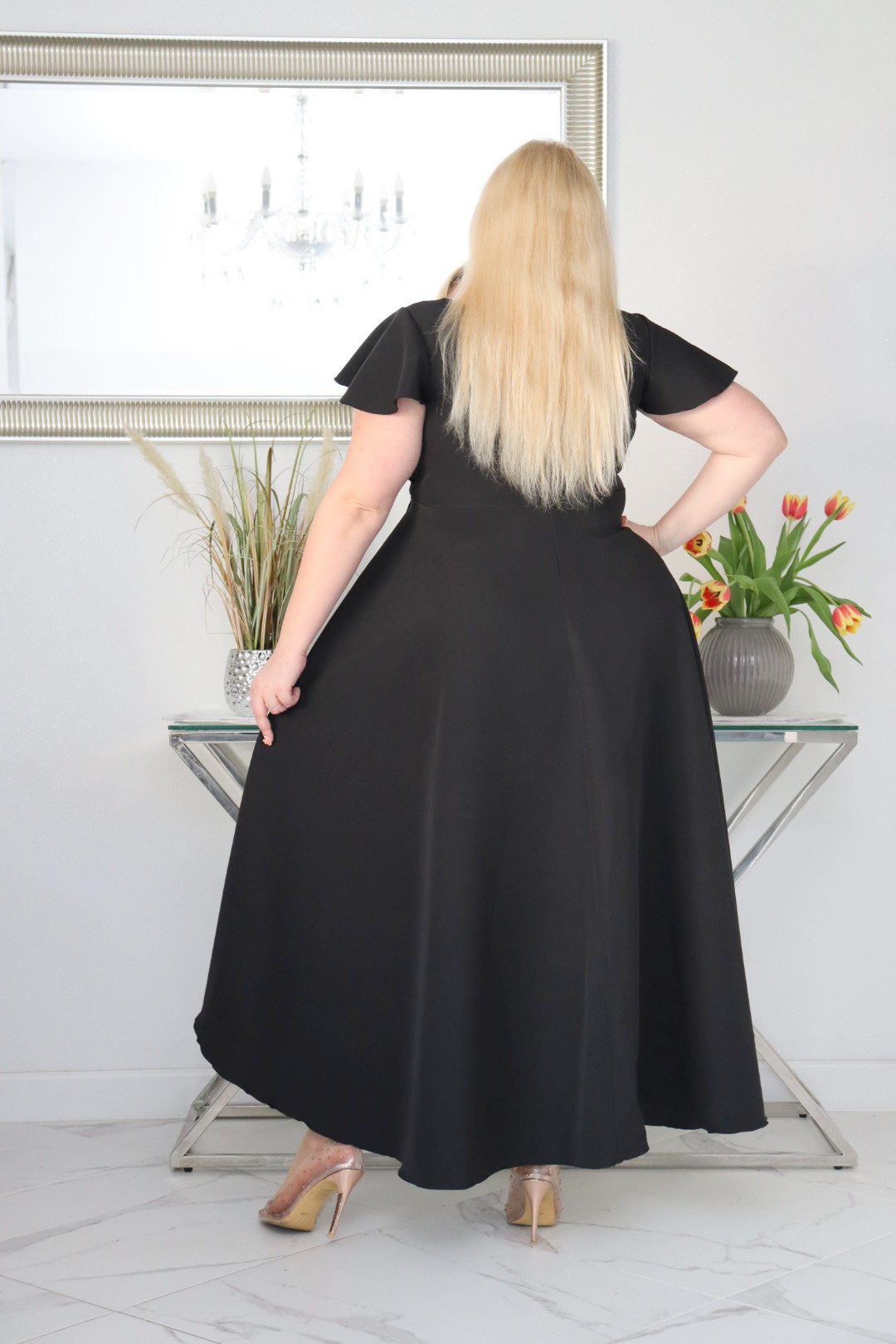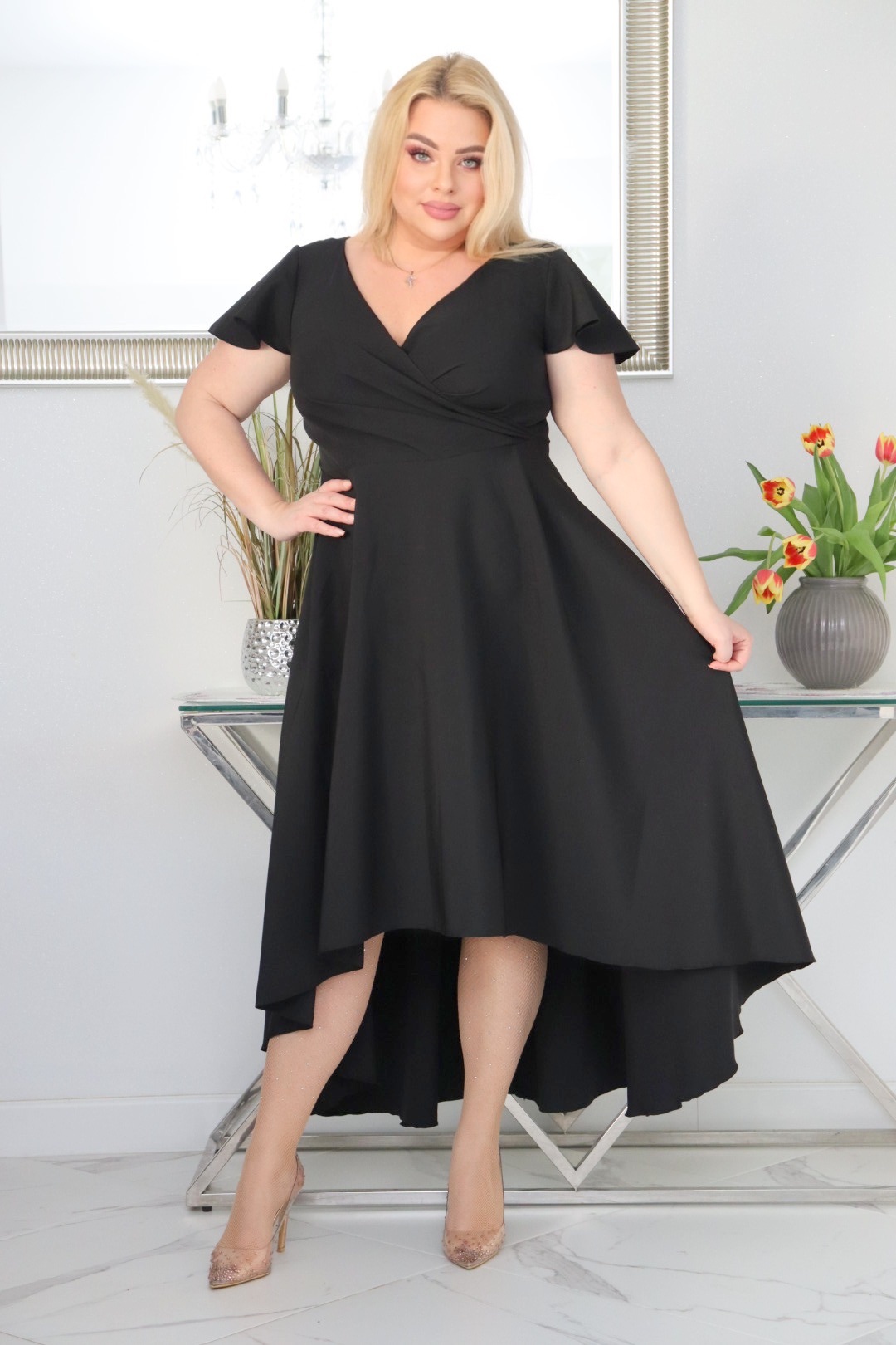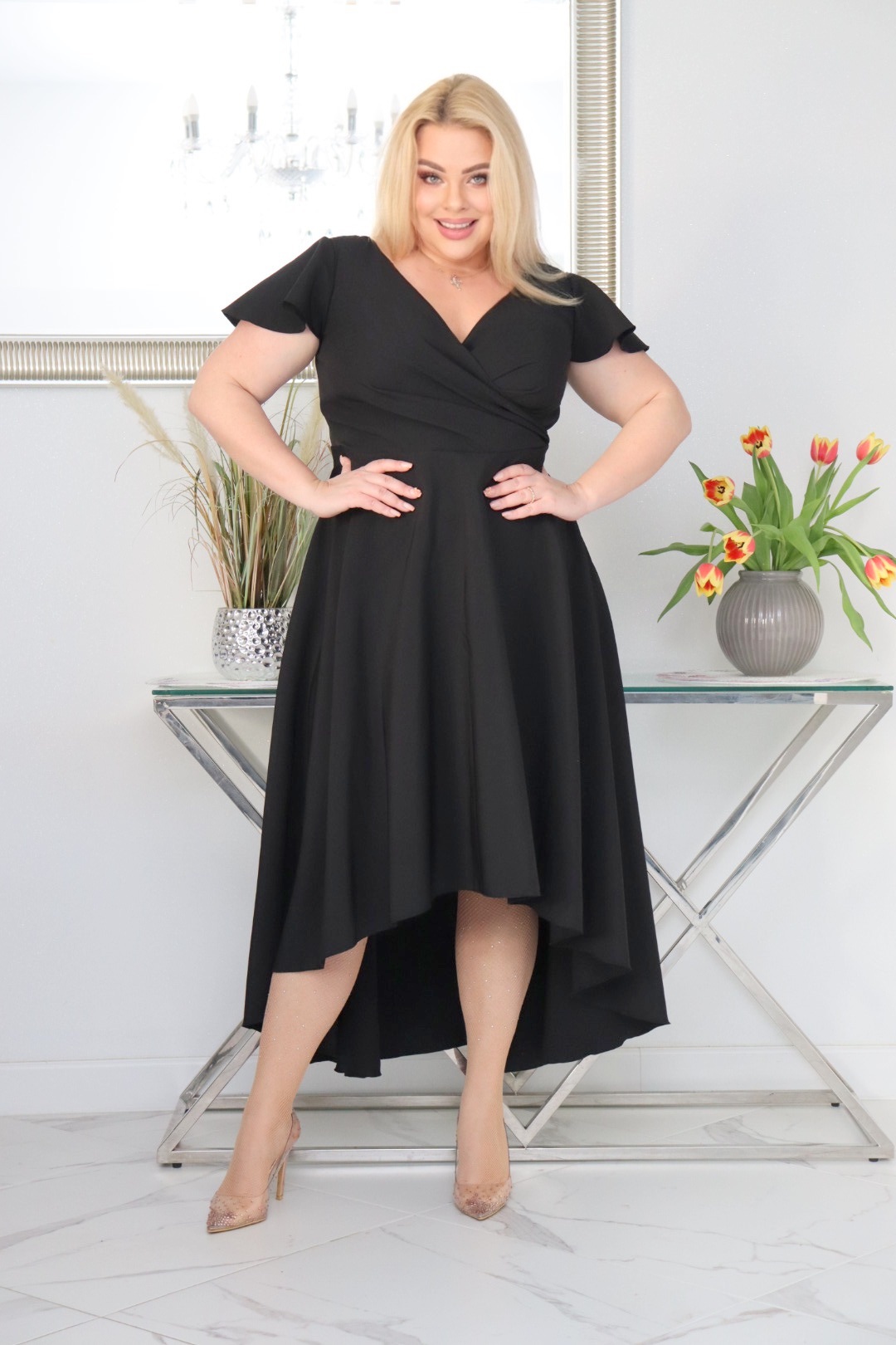 🇵🇱 Polski ProduktSukienka Soraja asymetryczna rozkloszowana ekskluzywna kopertowy dekolt czarna WYPRZEDAŻ !