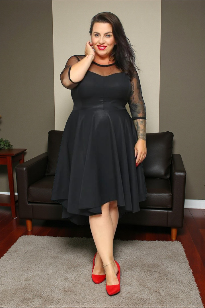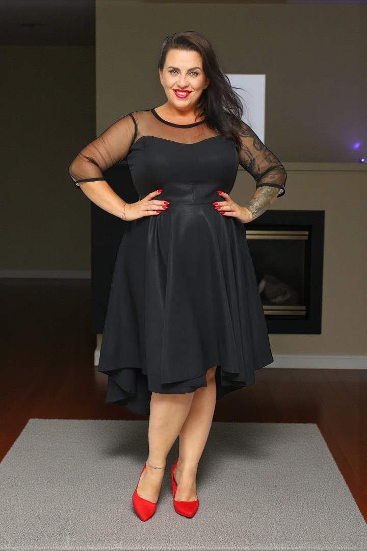 🇵🇱 Polski ProduktSukienka Valentina rozkloszowana asymetryczna dekolt serce tiul czarny