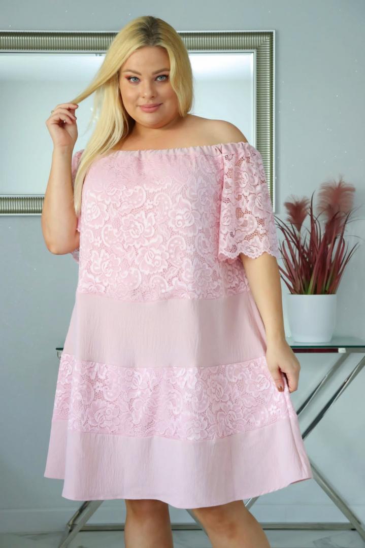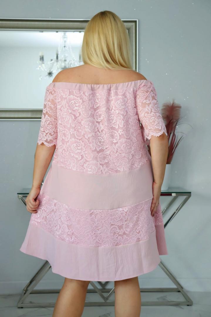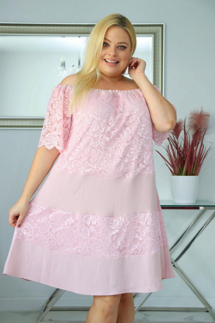 🇵🇱 Polski ProduktSukienka Wera wiskozowo-koronkowa trapezowa hiszpanka pudrowy róż PROMOCJA